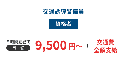 給与 | 【資格者以外】日給9,000円〜+交通費全額支給 【資格者】日給9,500円〜+交通費全額支給 |